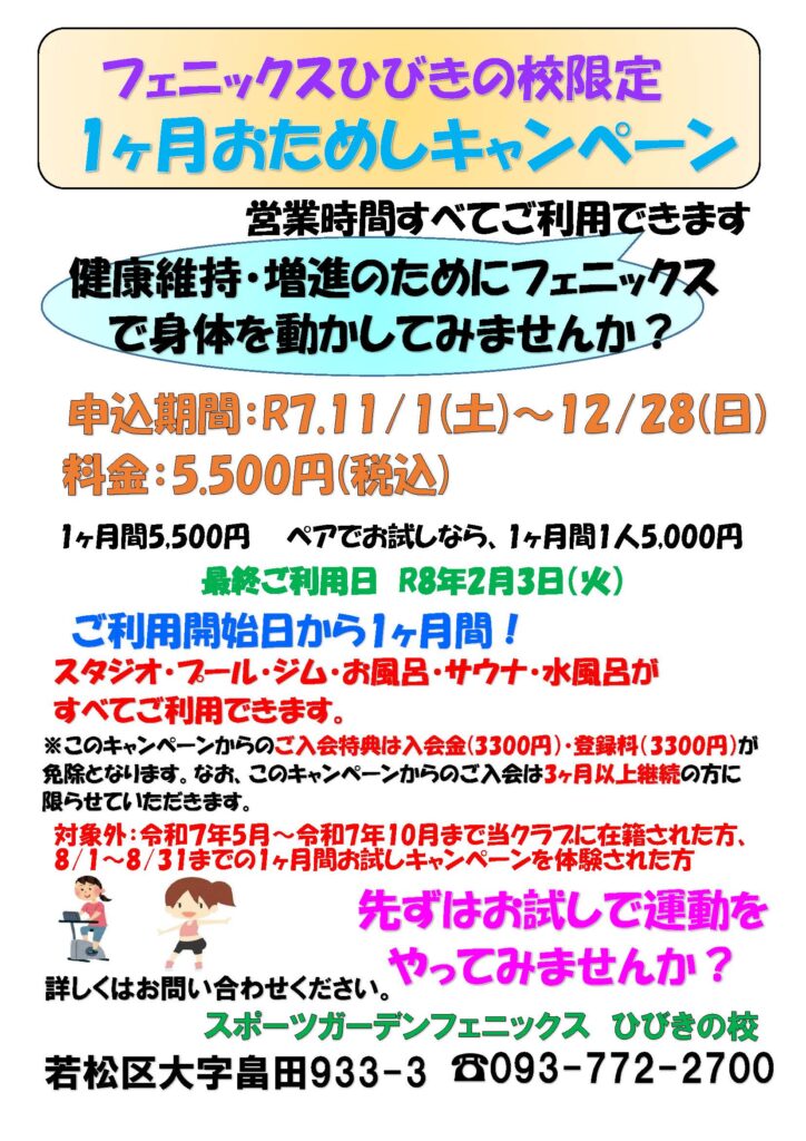 成人1ヶ月お試し入会キャンペーンのお知らせ‼️【PDFファイル】