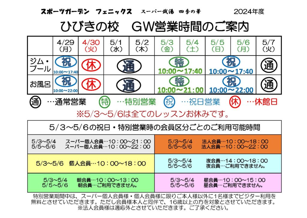 ひびきの校:GW特別営業のご案内 2024年4月26日 お知らせ ひびきの校 いつも当スポーツクラブをご贔屓いただき誠にありがとうございます。GW特別営業のご案内を致します。 詳細につきましては、下記画像またはPDFファイルよりご確認ください。 GW特別営業のご案内【PDFファイル】 URL Copied!