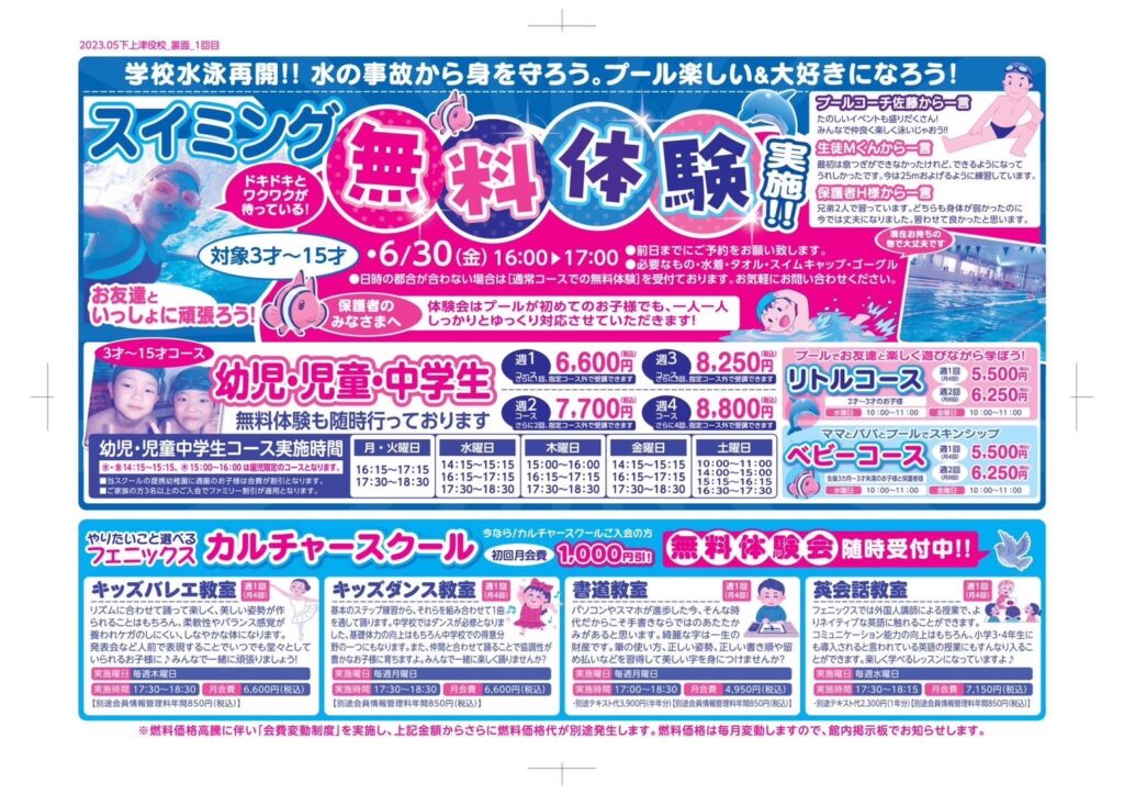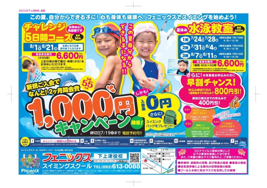 下上津役校:児童入会キャンペーン・夏休み教室のご案内 2023年6月16日 お知らせ 下上津役校 いつも当スポーツクラブをご贔屓いただき誠にありがとうございます。児童の新規入会キャンペーン・夏休み教室のお知らせを致します。 詳細につきましては、下記画像よりご確認ください。 URL Copied!