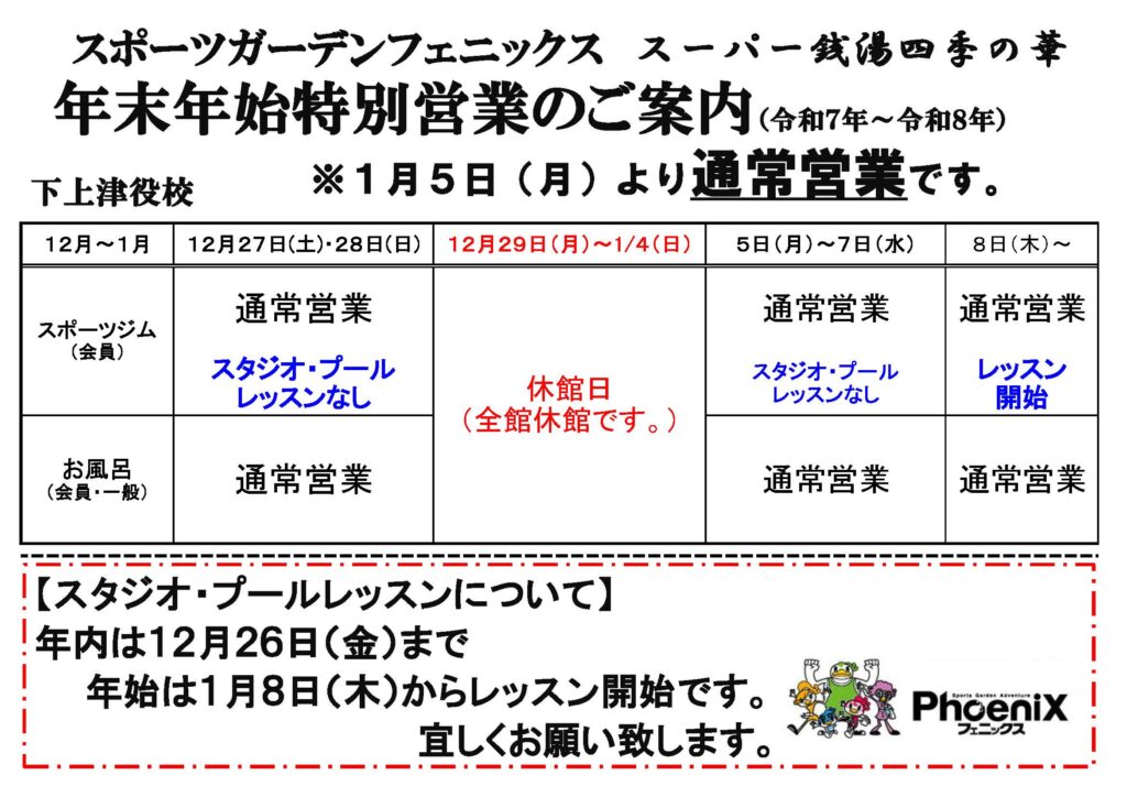 下上津役校:年末年始の休館日、営業開始日のご案内📢 2025年12月19日 お知らせ 下上津役校 詳細は、下記画像またはPDFファイルよりご確認ください。 年末年始の休館日、営業開始日のご案内📢【PDFファイル】 URL Copied!