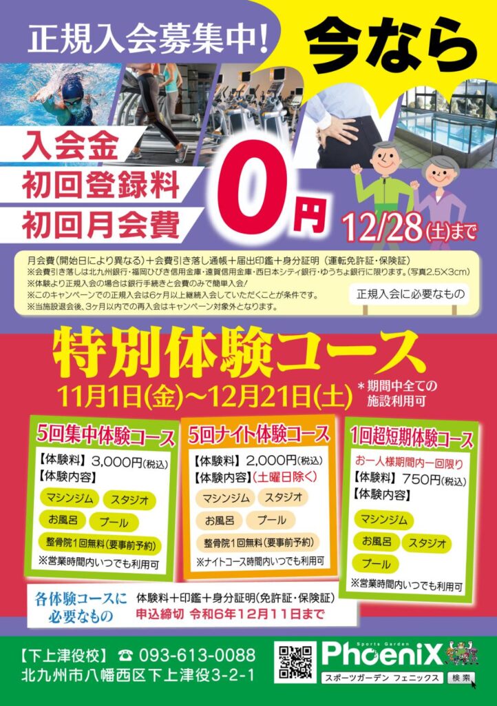 下上津役校:成人入会キャンペーン・特別体験のご案内📢 2024年11月1日 お知らせ 下上津役校 いつも当スポーツクラブをご贔屓いただき誠にありがとうございます。11月1日(金)から成人入会キャンペーンを実施いたします!また、特別体験コースも同時に行いますのでぜひこの機会にフェニックスへお越しください! 詳細につきましては、下記画像よりご確認ください。 URL Copied!