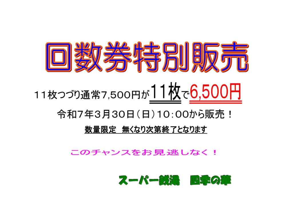 小倉南校:お得なお風呂回数券特別販売のお知らせ♪ 2025年3月17日 お知らせ 小倉南校 3月30日(日)限定でお風呂回数券特別販売を行います!11枚綴りの回数券が通常価格よりも更にお安くお得になってます!是非お買い求めください♪ 詳細につきましては、下記画像またはPDFファイルよりご確認ください。 お得なお風呂の回数券特別割引販売♪【PDFファイル】 URL Copied!