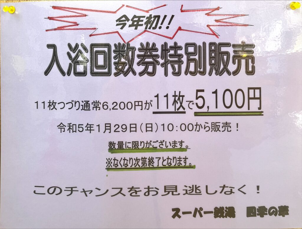 小倉南校:今年初!お風呂の回数券特別割引販売♪ 2023年1月10日 お知らせ 小倉南校 いつも当スポーツクラブをご贔屓いただき誠にありがとうございます。1月29日(日)に今年初めてのお風呂の回数券割引販売を行います! 詳細につきましては、下記画像またはPDFファイルよりご確認ください。 お風呂の回数券特別割引販売【PDFファイル】 URL Copied!