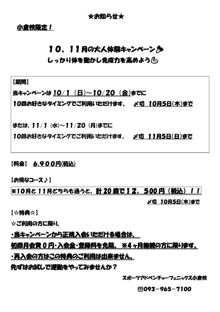 小倉南校:大人の体験キャンペーンのお知らせ📢